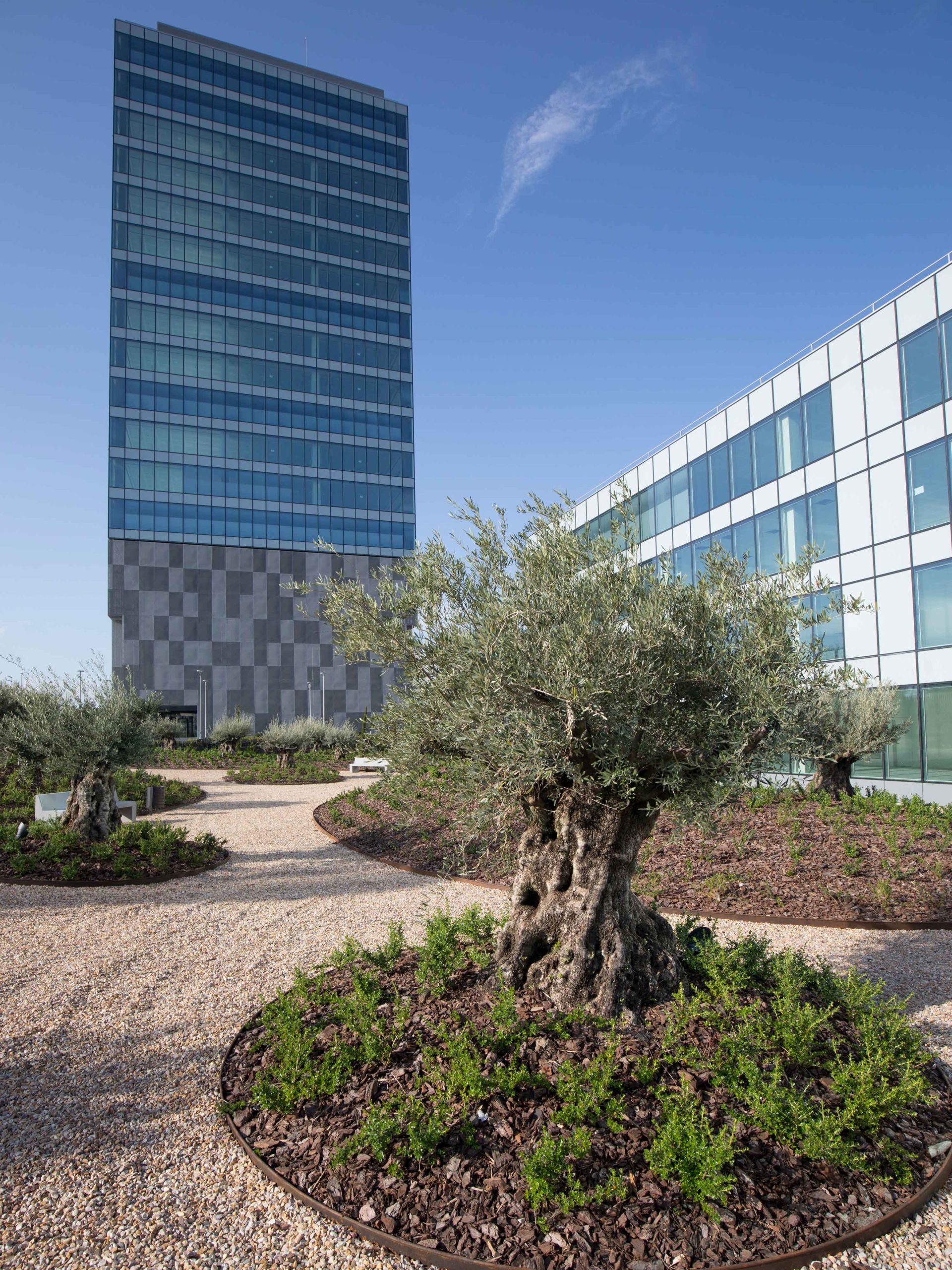 Torre Chamartín ofrece 245 plazas de aparcamiento con puntos de carga para vehículos eléctricos, zonas de relax, salas polivalentes, 291m2 de terraza, un espacio destinado a la restauración y un vistoso jardín vertical.