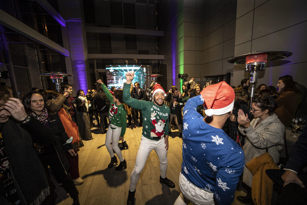 | La fiesta consistió en un pequeño evento en nuestro edificio de Torre Chamartín en el que, además de un cocktail, contamos con DJ y bailarines para amenizar la ocasión. Aprovechamos el momento para felicitarnos la Navidad, disfrutar unas horas distendidas y compartir nuestros mejores deseos e ilusiones para el año que viene en este gran proyecto que acabamos de iniciar juntos. |